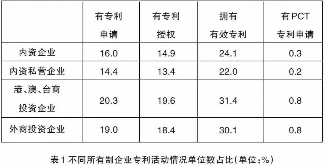 從所有制結(jié)構(gòu)看,外資企業(yè)和港澳臺(tái)資企業(yè)具有更強(qiáng)的專利活動(dòng)能力,特別是在發(fā)明專利方面有更大優(yōu)勢(shì),進(jìn)而支持其高利潤水平。反觀內(nèi)資企業(yè),特別是私營企業(yè)的專利活動(dòng)相對(duì)較弱,無論在專利意識(shí)上,還是在研發(fā)投入能力和專利獲得能力上,都有待提高。盡管所有制的政策差異會(huì)逐漸淡化,但如何在少數(shù)代表性企業(yè)之外,更為廣泛地推動(dòng)以私營企業(yè)為代表的廣大內(nèi)資企業(yè)研發(fā)活動(dòng)和專利活動(dòng)值得關(guān)注。