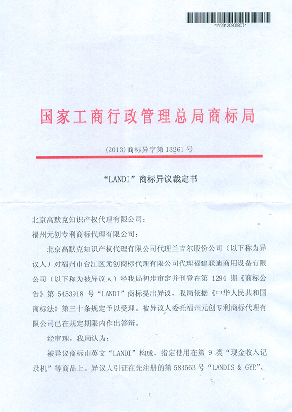 LANDI異議裁定